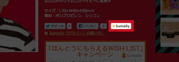 なお、パルコの特設サイト( http://www.parco-gift.com/xmas_gift/ )には、初公開となる「Sumallyボタン」を実装。Sumally外のサイトにも関わらず、ブックマークレットを用いることなく「want it」や「have it」を行うことが可能になっていますので、是非お試しください!