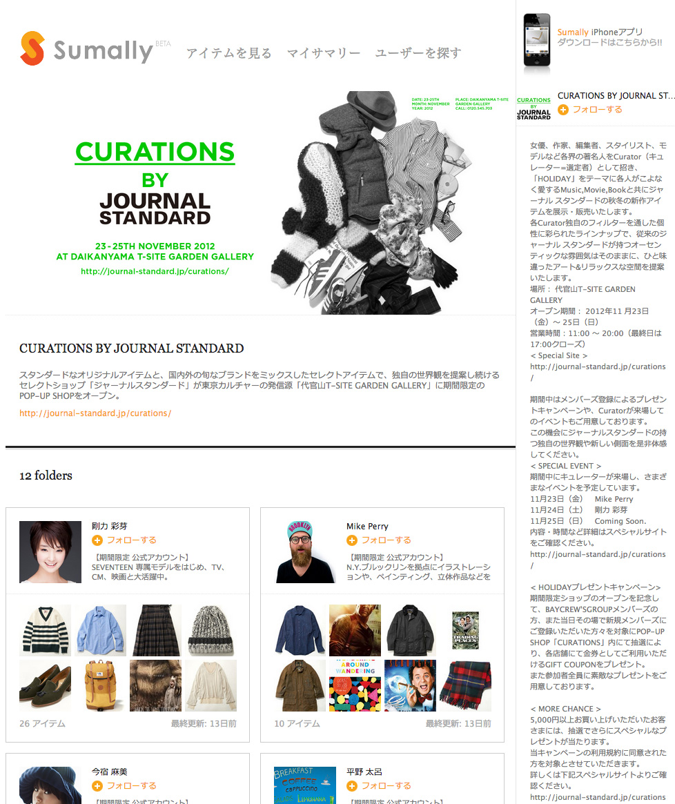 CURATIONS BY JOURNAL STANDARD Sumallyページ