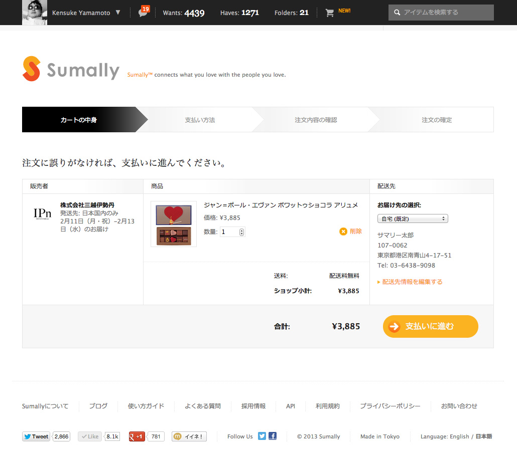 カートに入れて購入すれば、Sumally内で決済まで完了します。