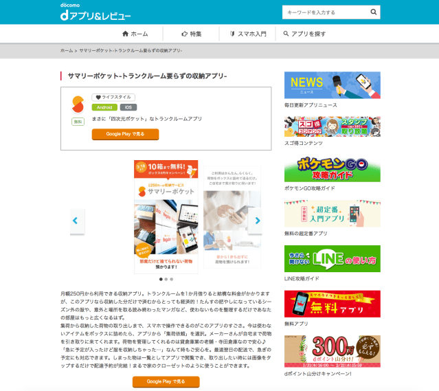 NTTドコモの dマーケット アプリ&レビューサイトにてサマリーポケットをご紹介いただいています。ぜひご覧ください。