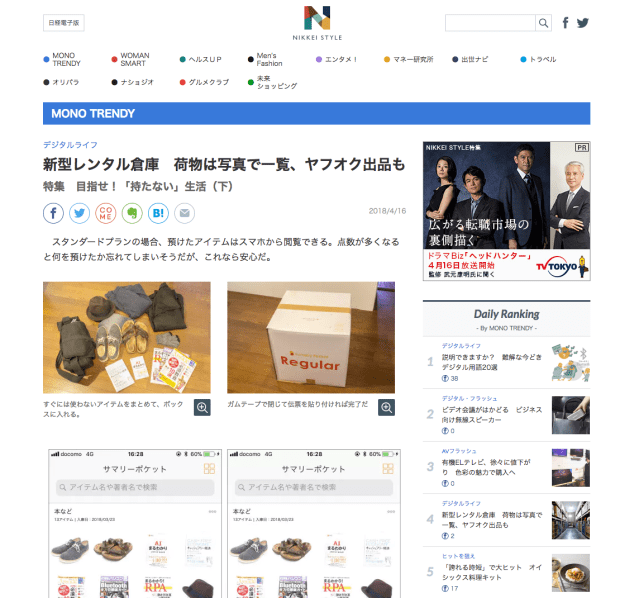 日本経済新聞社『NIKKEI STYLE』の特集「目指せ!『持たない』生活」にて、サマリーポケットをご紹介いただきました。