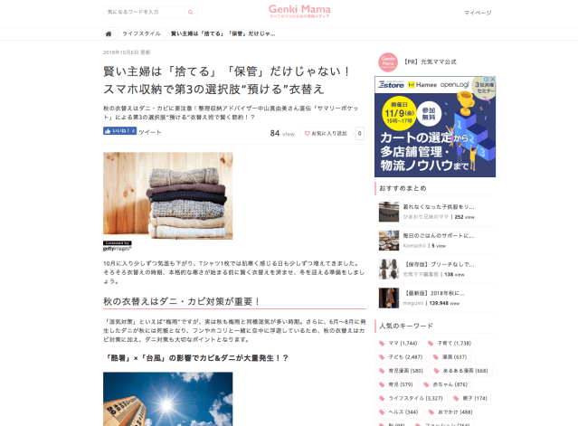 ママのための情報WEBメディア『Genki Mama』で、整理収納アドバイザー・中山真由美さんにサマリーポケットを使った衣替えの方法を提案いただいています。