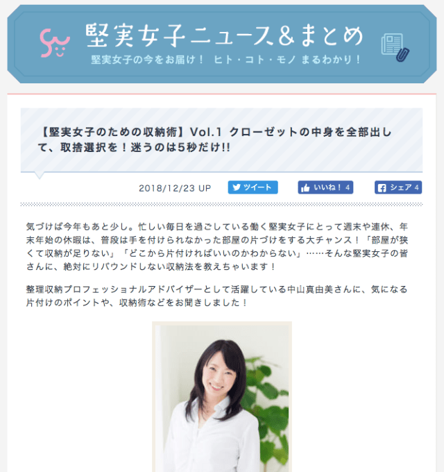 働く堅実女子のお悩み解決サイト『Suits-woman.jp』で、整理収納アドバイザー・中山真由美さんにサマリーポケットを使った片付け・収納方法を提案いただきました。