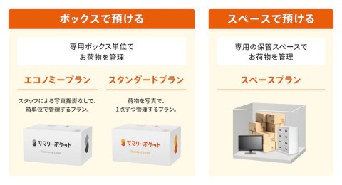 サマリーポケットは、専用ボックスに預けたい荷物を詰めて送る、月額1箱330円から利用可能な荷物保管サービスです。預けたアイテムを1点ずつスタッフが撮影した写真で管理できるプランや、箱単位での管理できるプランがあります。荷物の出し入れは全国一律料金で、Webから集荷・配送の依頼をするだけで完結します。サマリーポケットでお預かりする荷物は、寺田倉庫・三菱倉庫と提携した信頼できる管理体制のもと、徹底した空調とセキュリティ管理を行なった保管センターで、厳重にお預かりします。