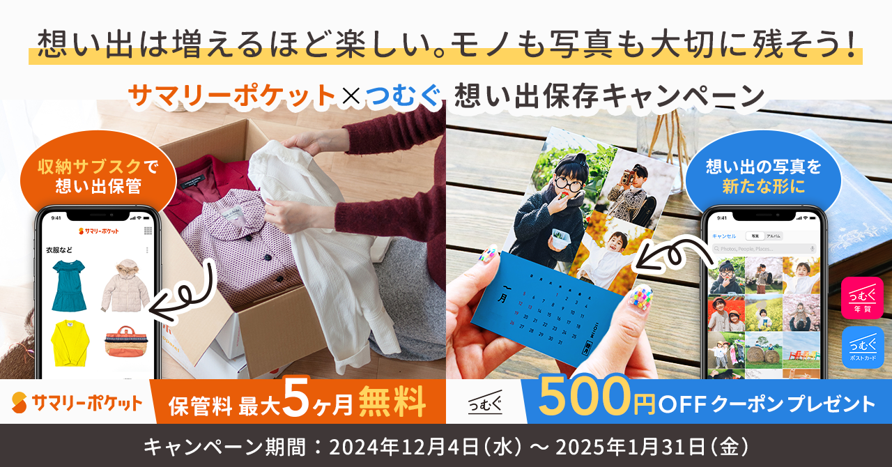 【想い出は増えるほど楽しい。モノも写真も大切に残そう!】サマリーポケット×つむぐによる「想い出保存キャンペーン」開催
