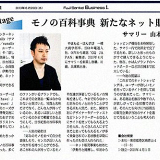 フジサンケイ ビジネスアイ 6月26日号 本日6月26日付けのフジサンケイ ビジネスアイにて、弊社代表山本のインタビュー記事が掲載されています。 http://www.business-i.jp/corp/