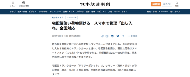 1月21日(水)の日本経済新聞「知っとくトク」コーナーで、“話題の宅配型トランクルーム”の一つとして、サマリーポケットをご紹介いただきました。 ■ 日経電子版 宅配便使い荷物預ける スマホで管理「出し入れ」全国対応 ht […]
